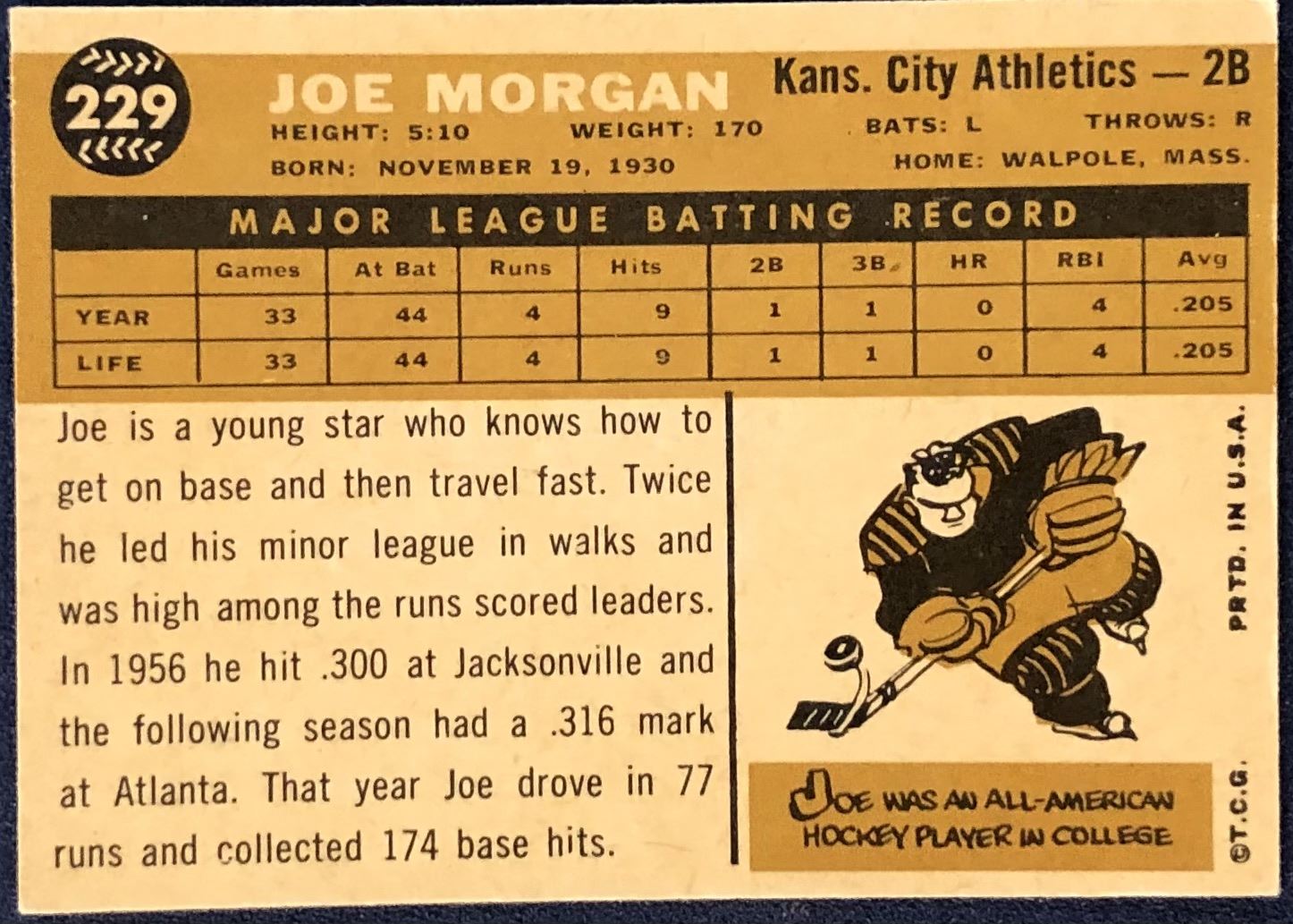 Lot 12 1960 TOPPS BASEBALL WHITE BACKS - JOE MORGAN ROOKIE CARD