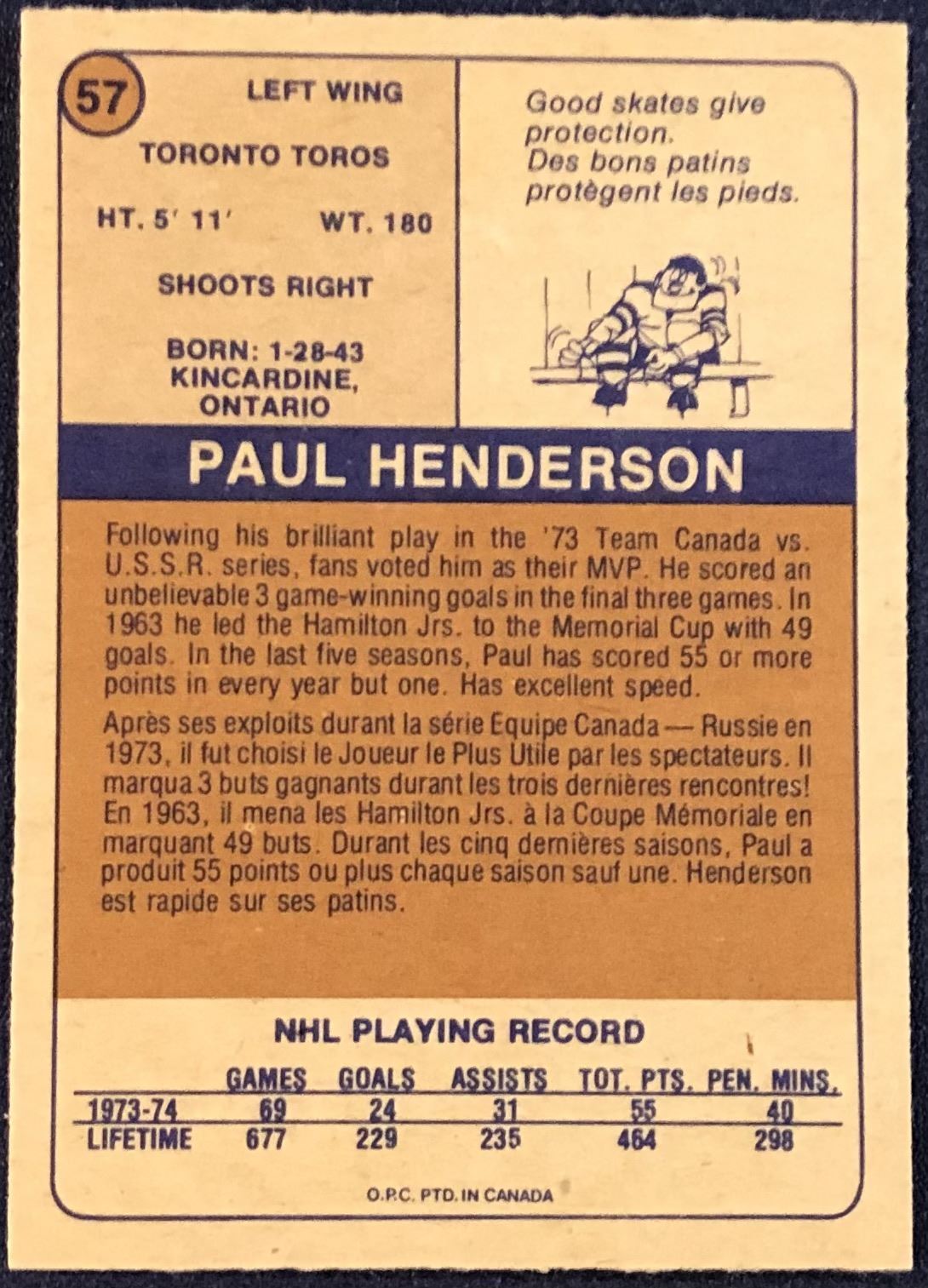 Lot 29 1974-75 O-PEE-CHEE WHA PAUL HENDERSON