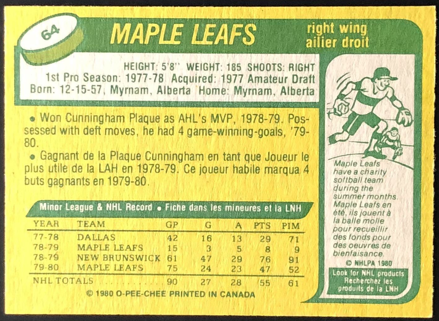 Card #64 NHL, hockey, vintage, OPC, rookie