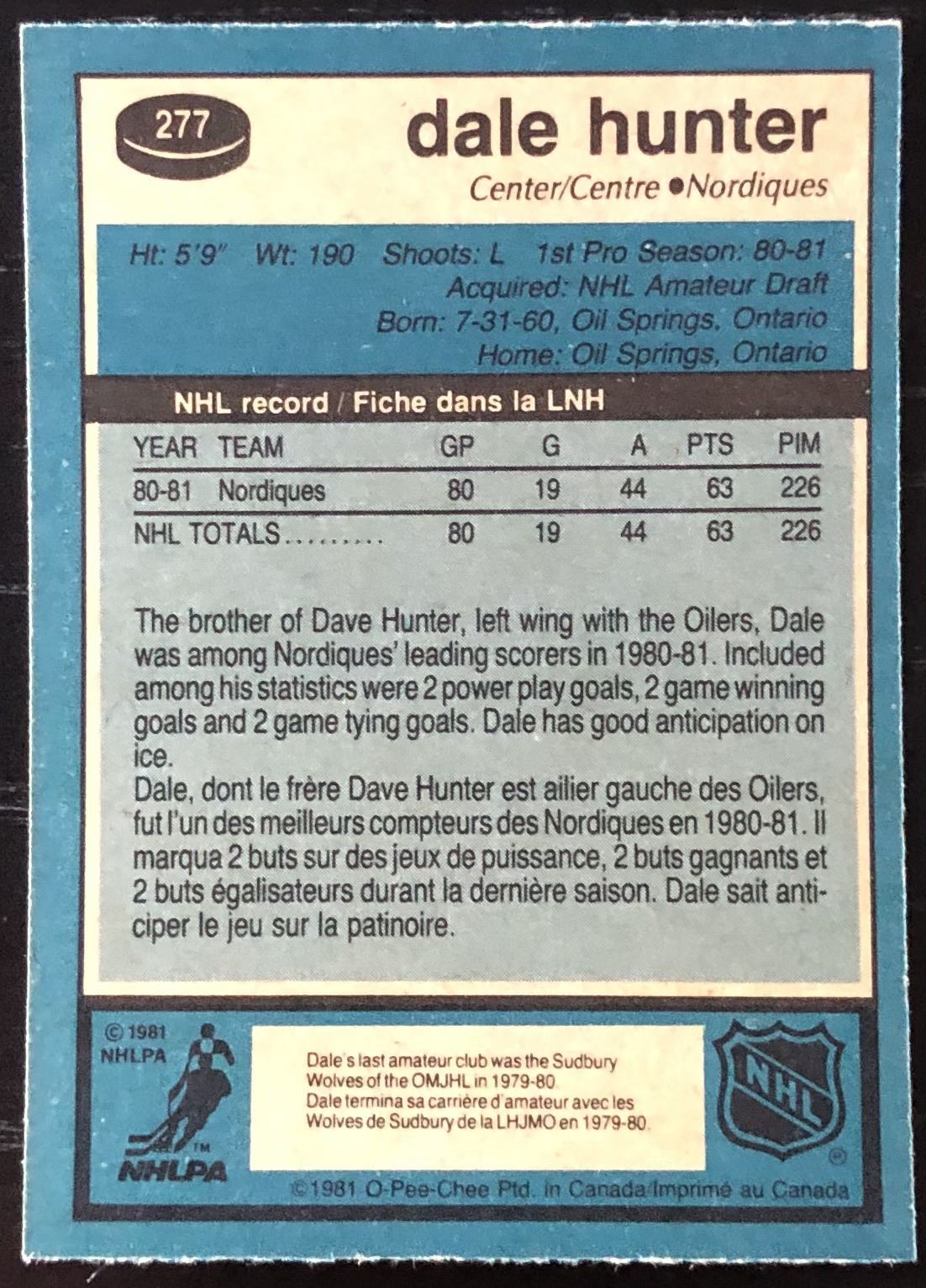 Lot 46 1981-82 O-PEE-CHEE DALE HUNTER ROOKIE CARD