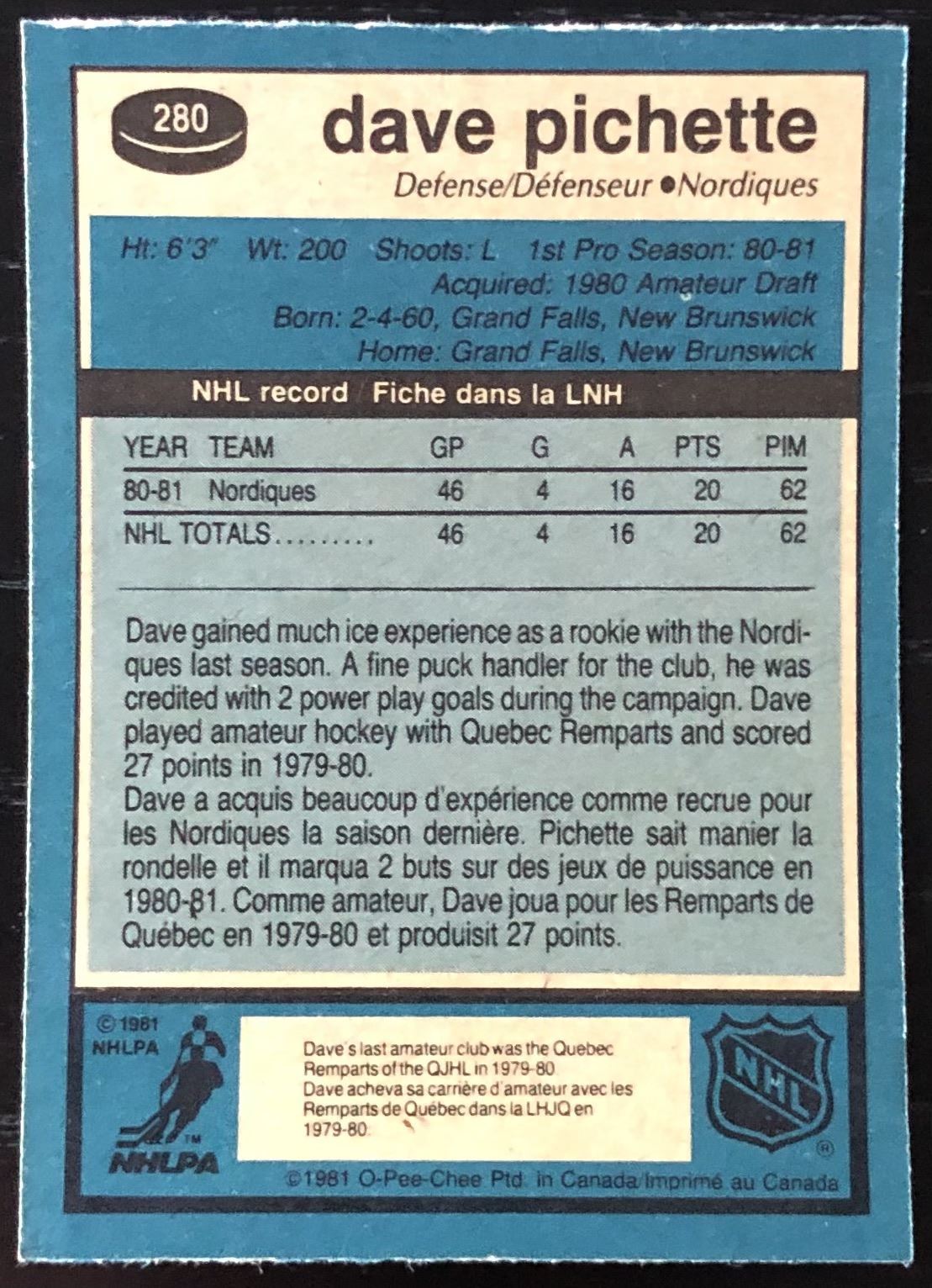 Lot 47 1981-82 O-PEE-CHEE DAVE PICHETTE ROOKIE CARD