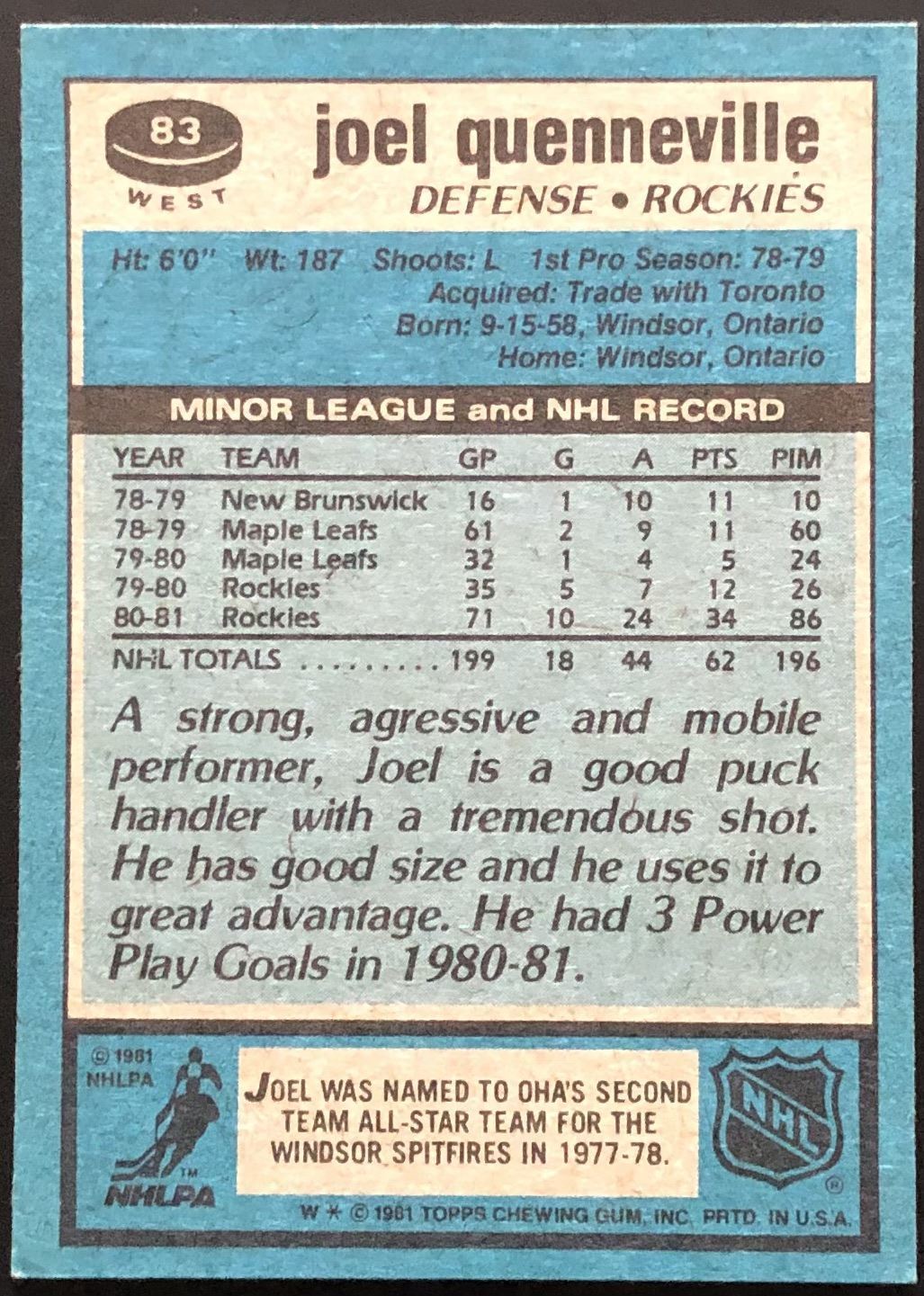 Lot 69 1981-82 TOPPS JOEL QUENNEVILLE
