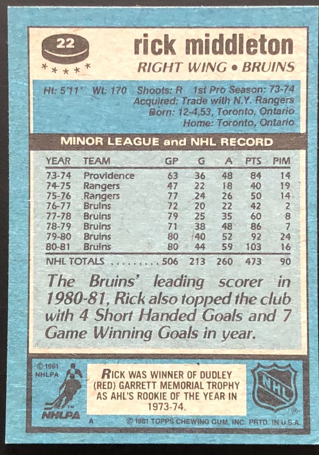 Lot 71 1981-82 TOPPS RICK MIDDLETON (HOF)