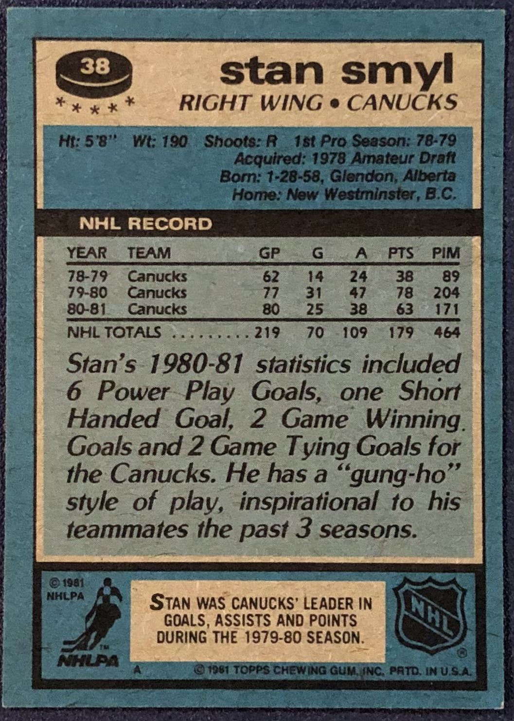 Lot 73 1981-82 TOPPS STAN SMYL