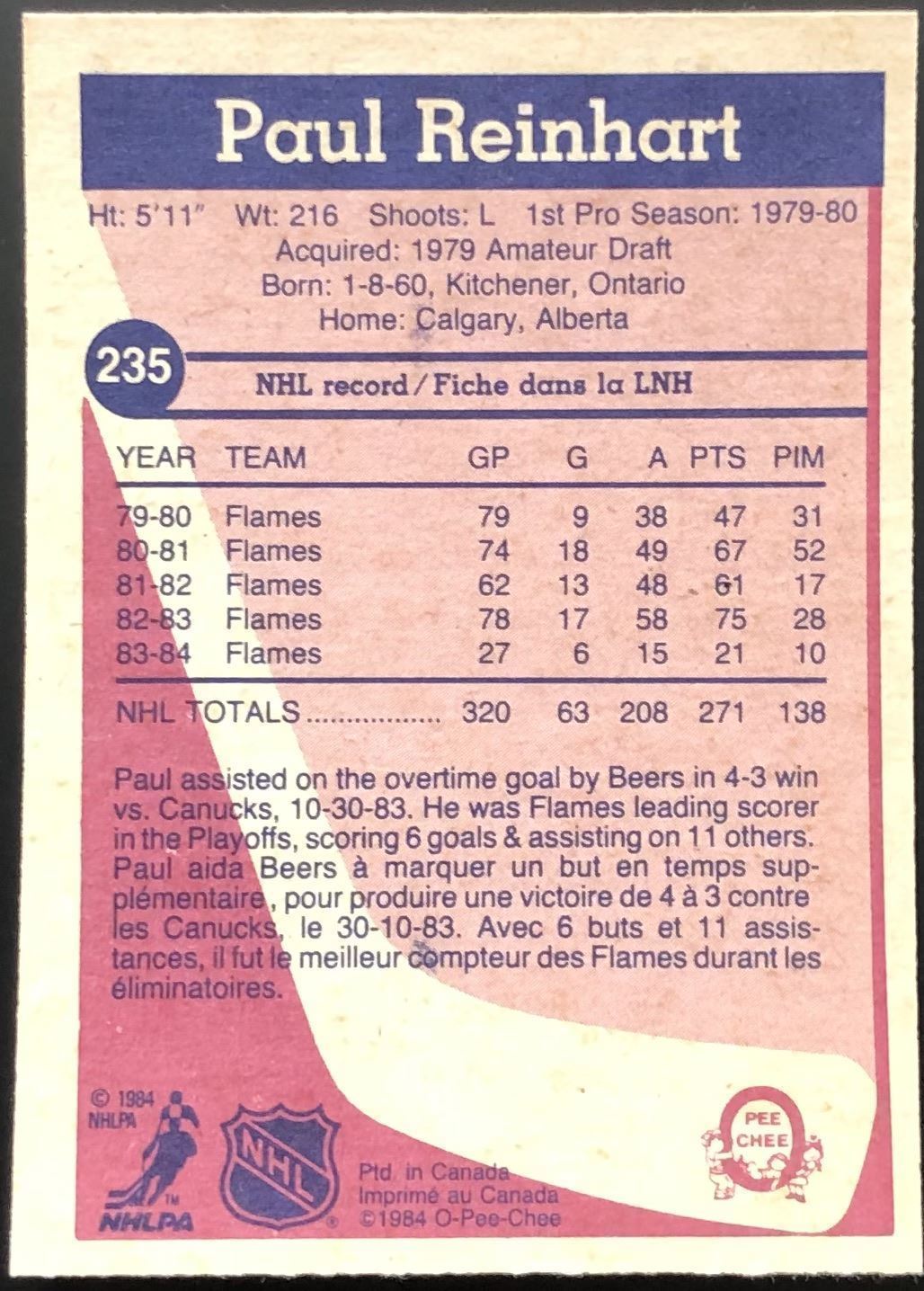Lot 83 1984-85 O-PEE-CHEE PAUL REINHART