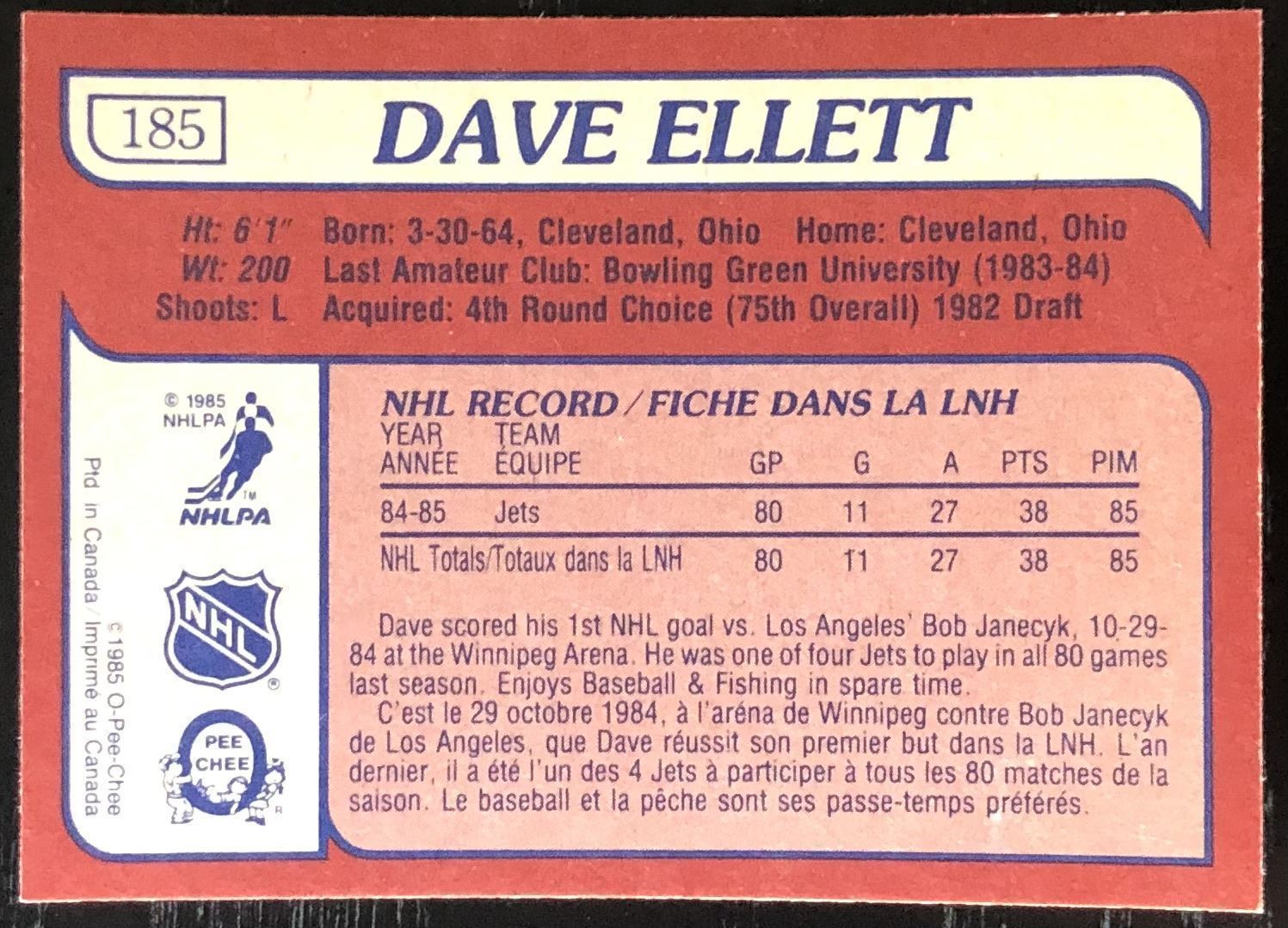Lot 91 1985-86 O-PEE-CHEE DAVE ELLETT ROOKIE CARD