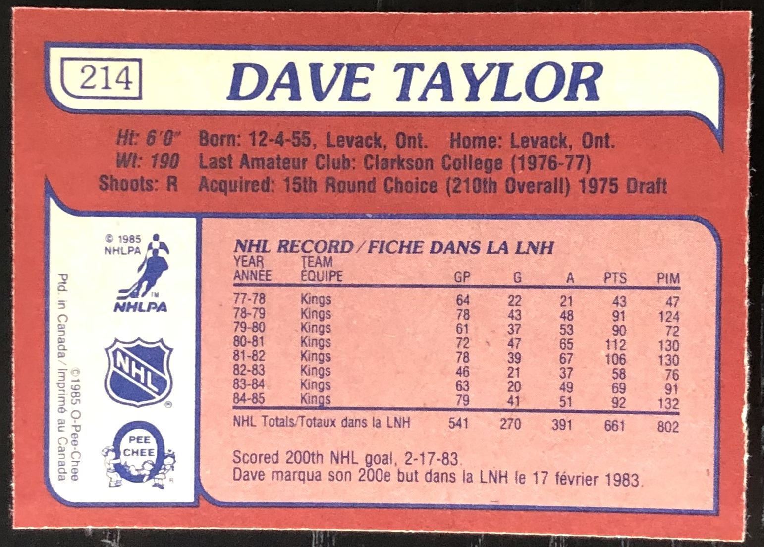 Lot 92 1985-86 O-PEE-CHEE DAVE TAYLOR (HOF)