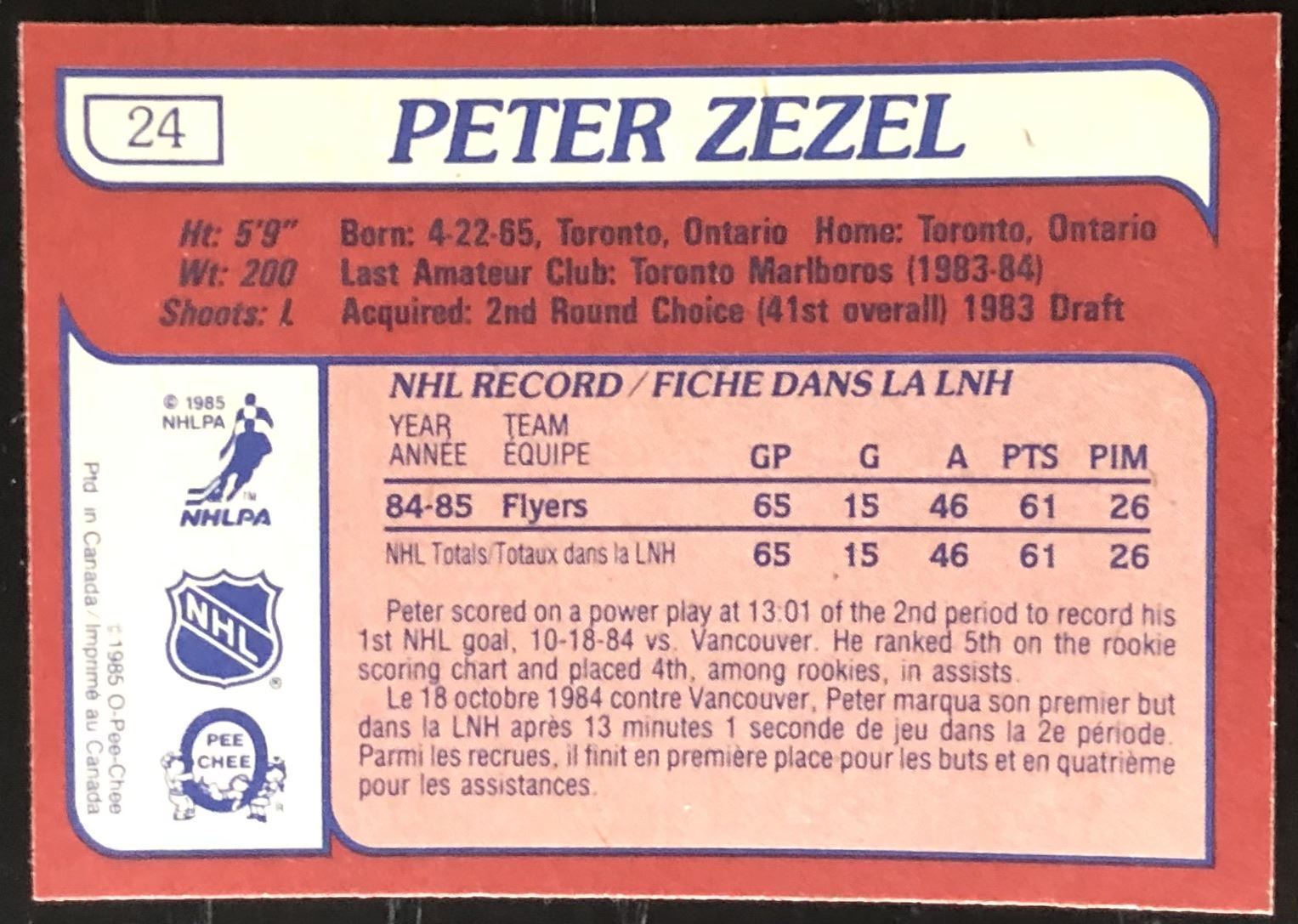 Lot 99 1985-86 O-PEE-CHEE PETER ZEZEL ROOKIE CARD