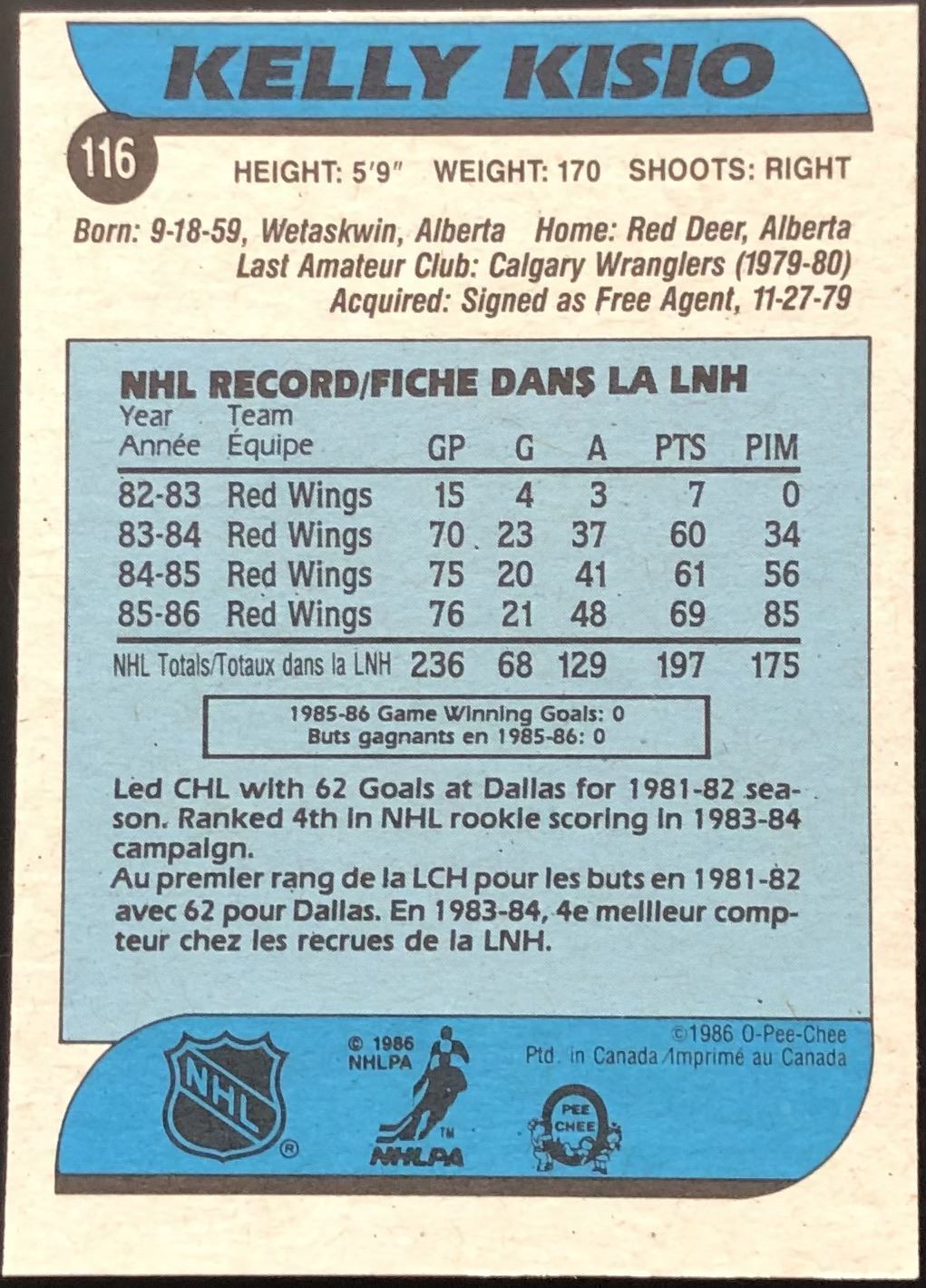 Lot 103 1986-87 O-PEE-CHEE KELLY KISIO