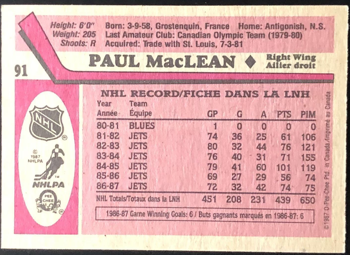 Lot 105 1987-88 O-PEE-CHEE PAUL MacLEAN