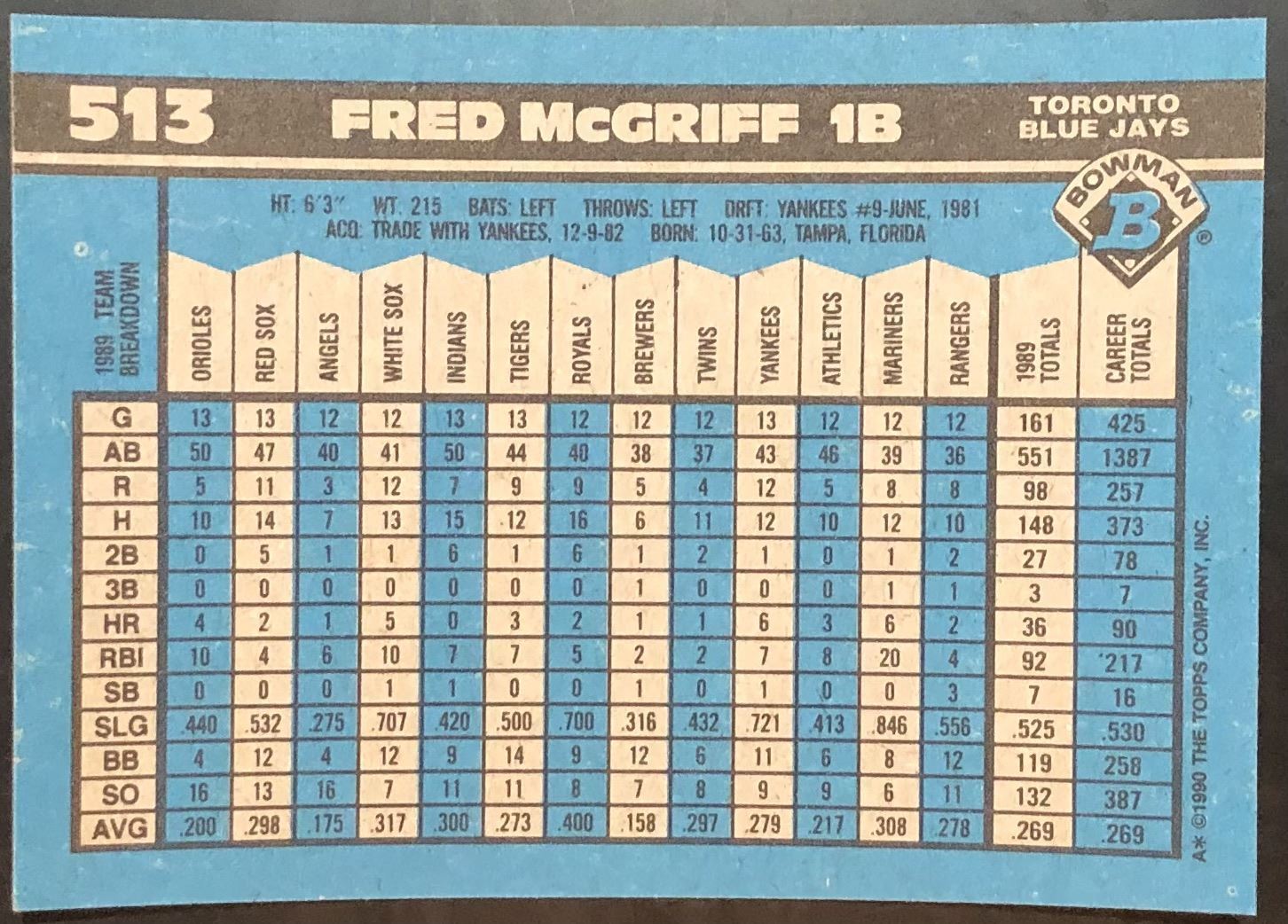 Lot 109 1990 BOWMAN FRED McGRIFF (HOF)