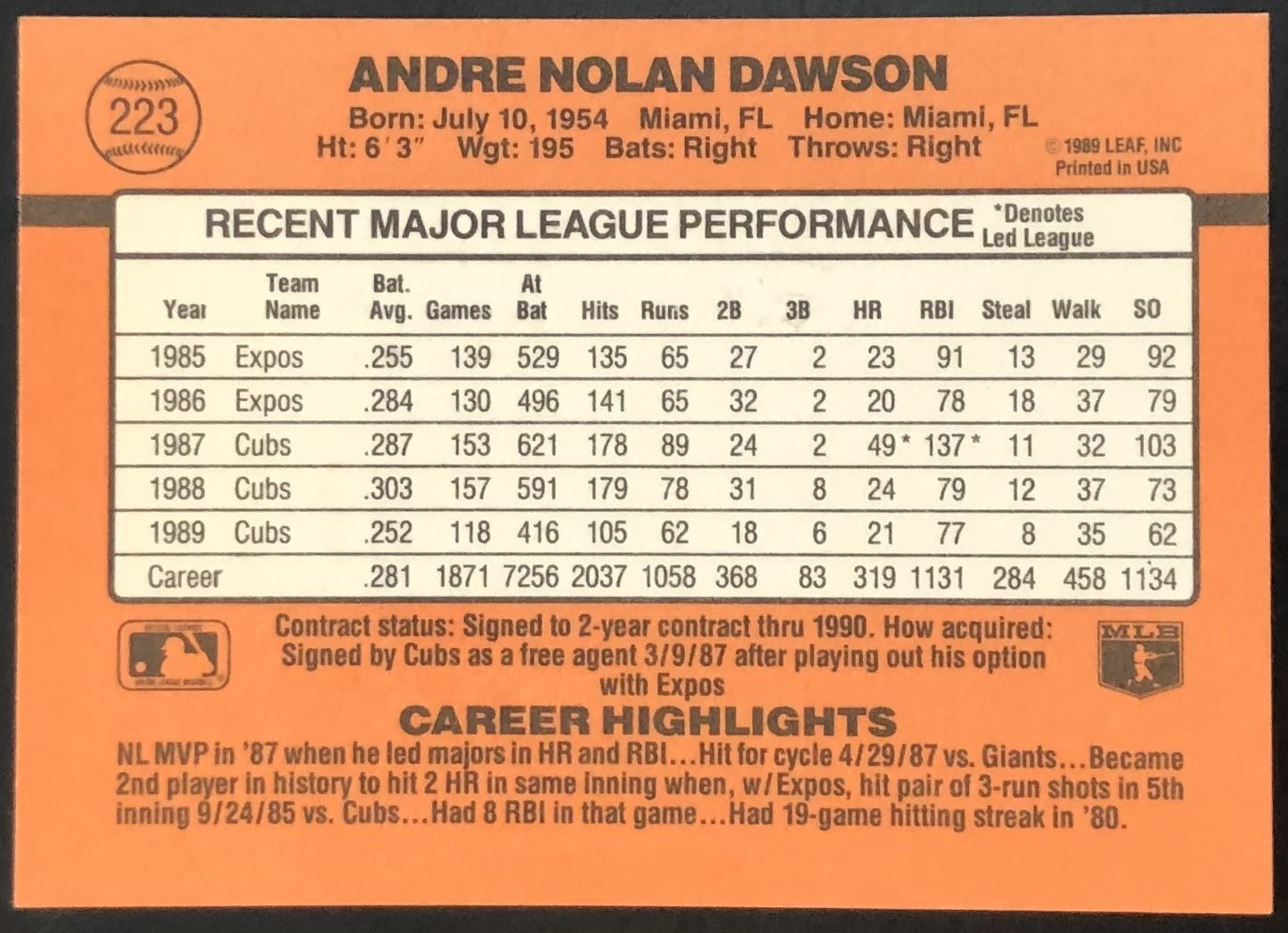 Lot 110 1990 DONRUSS ANDRE DAWSON (HOF)