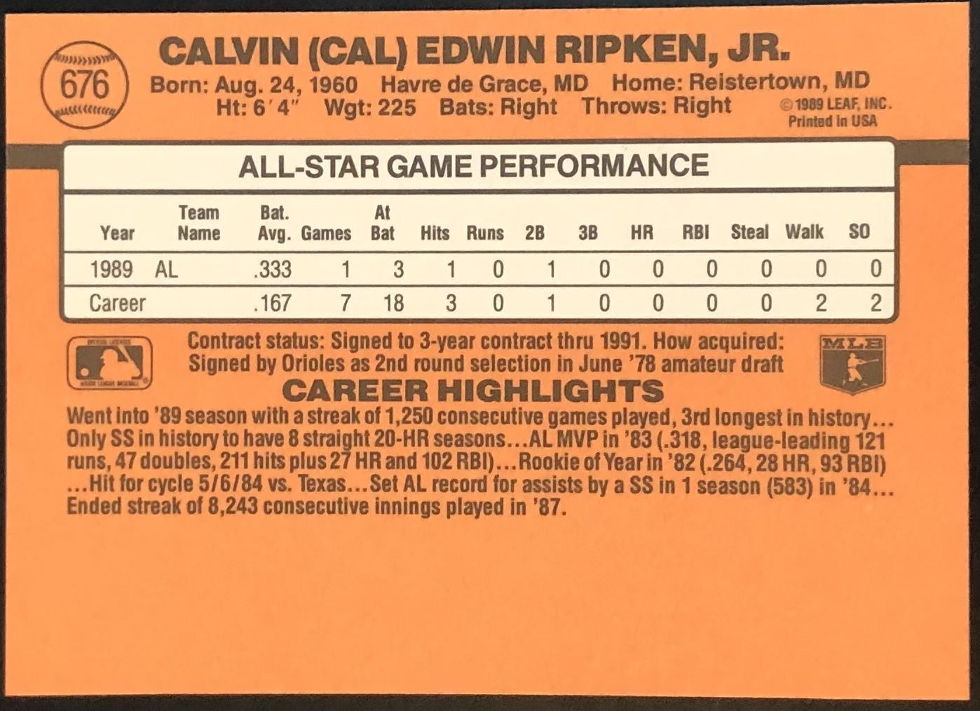 Lot 113 1990 DONRUSS CAL RIPKEN JR. (HOF)