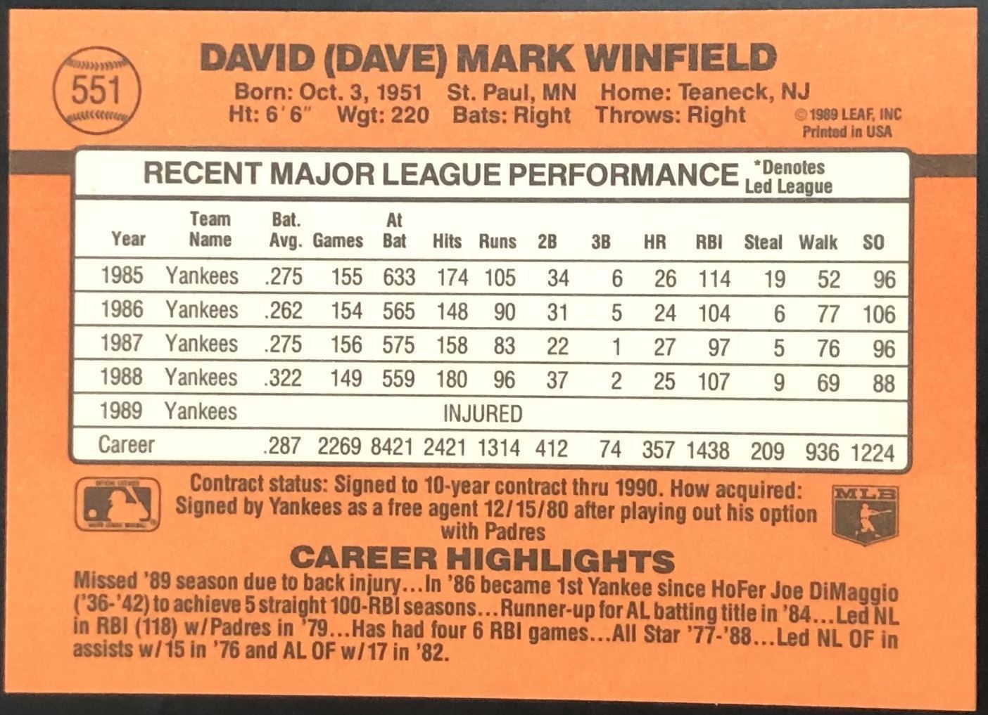 Lot 116 1990 DONRUSS DAVE WINFIELD (HOF)