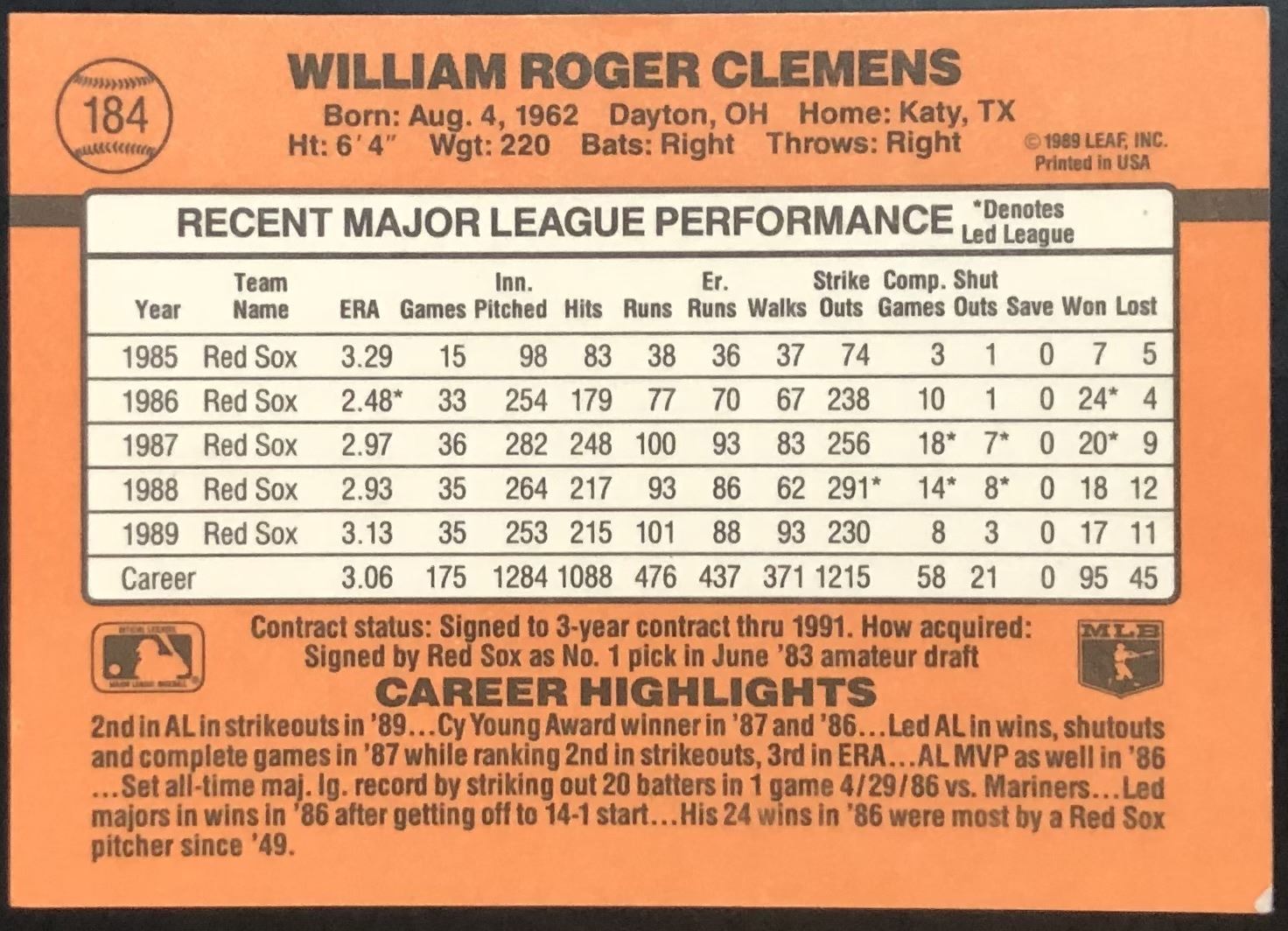 Lot 124 1990 DONRUSS MLB ROGER CLEMENS