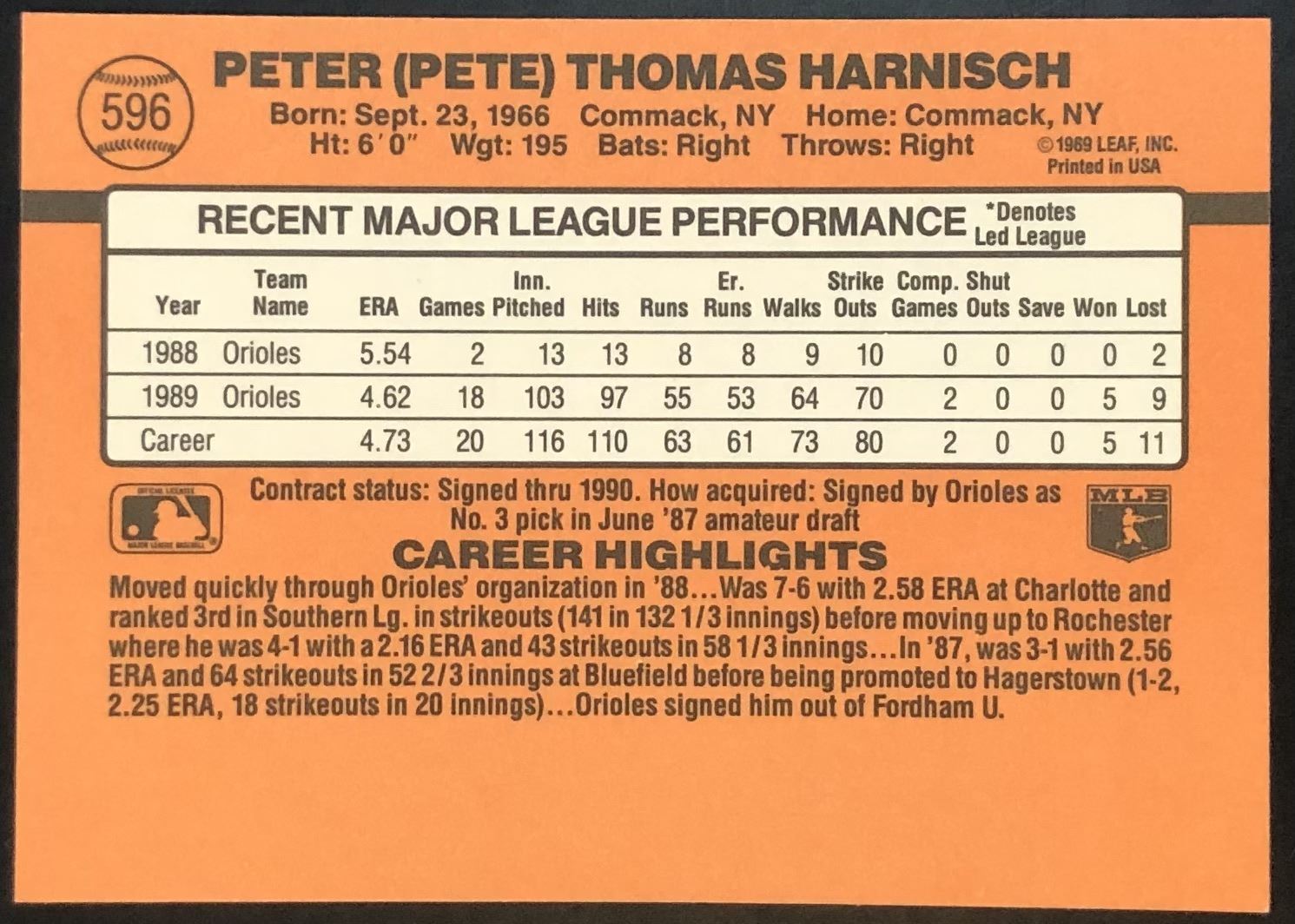 Lot 125 1990 DONRUSS PETE HARNISCH ROOKIE CARD