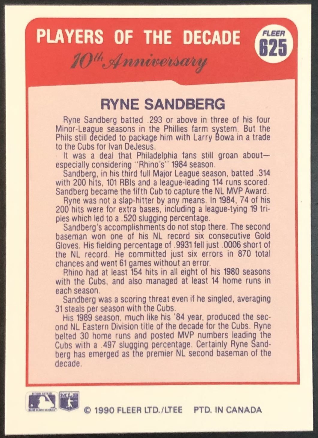Lot 133 1990 FLEER RYNE SANDBERG (HOF)