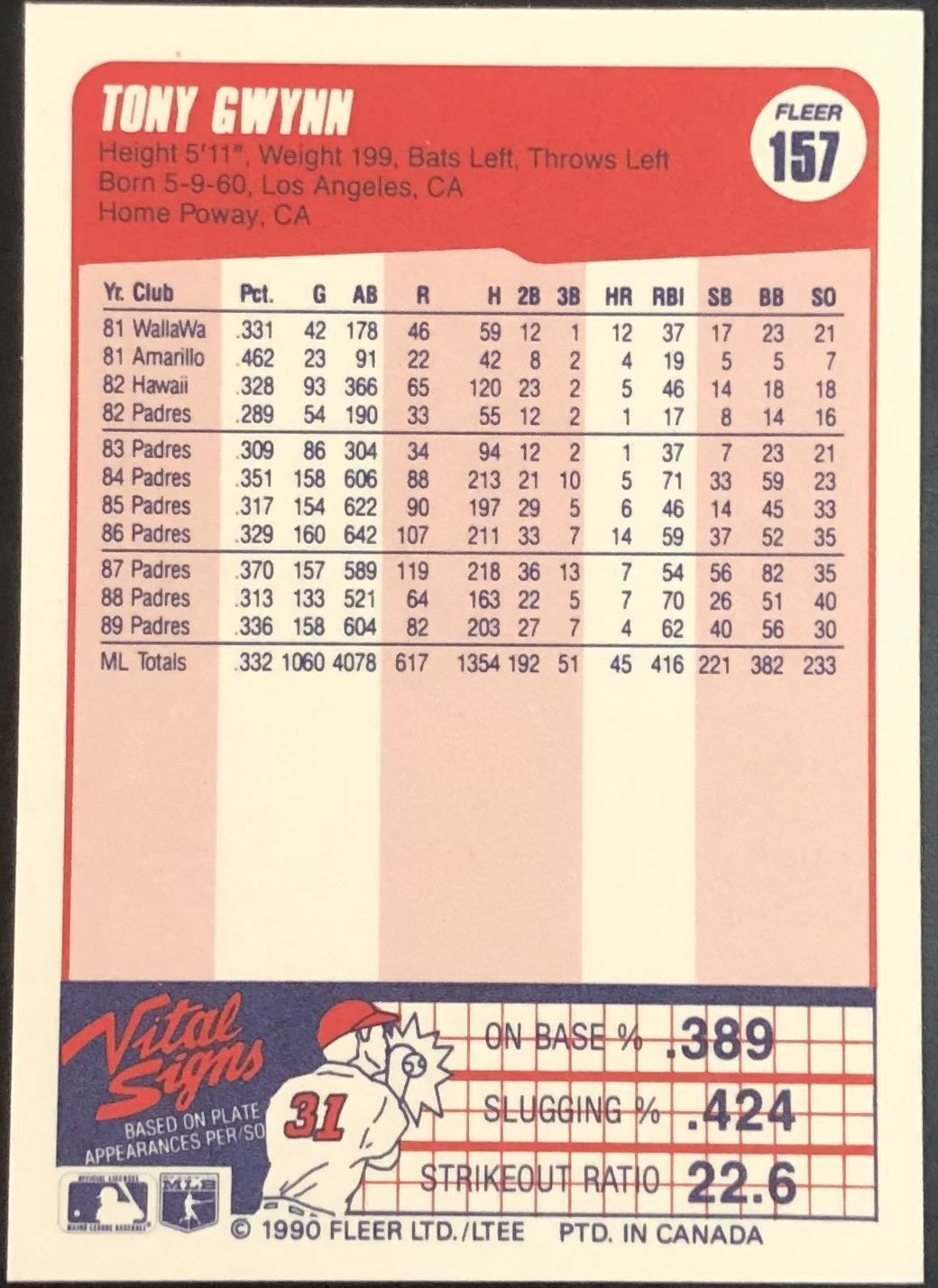 Lot 134 1990 FLEER TONY GWYNN (HOF)