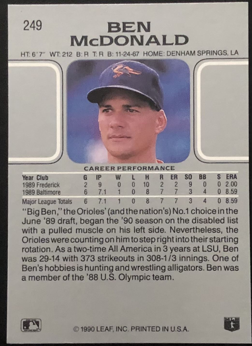 Lot 135 1990 LEAF BEN McDONALD ROOKIE CARD
