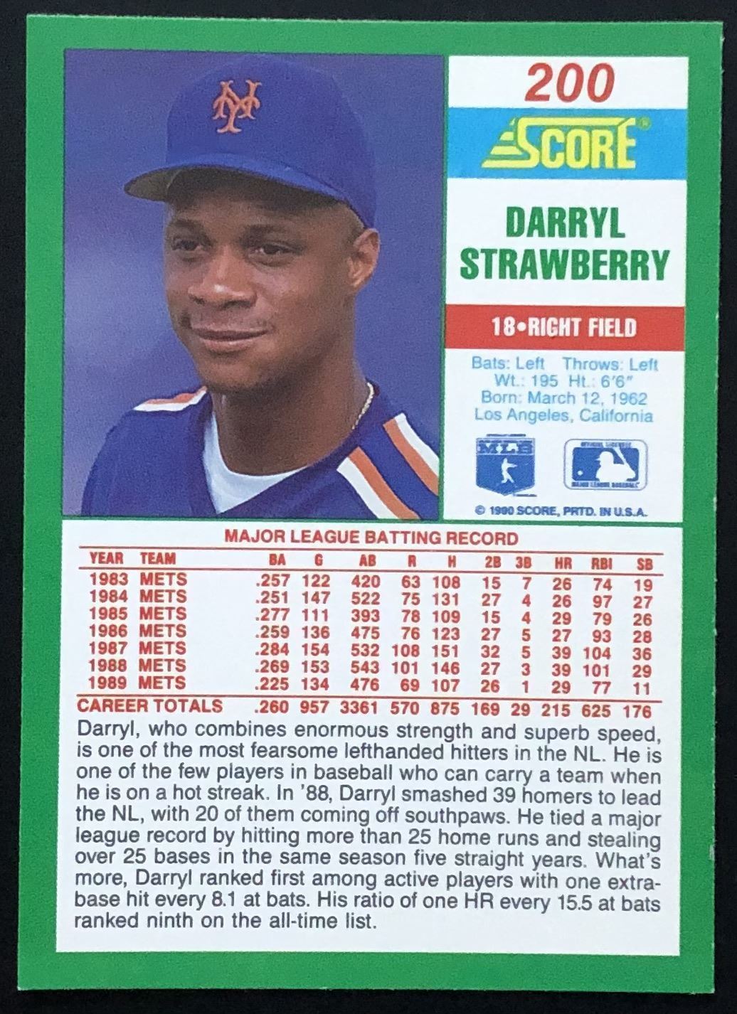 Lot 138 1990 SCORE DARRYL STRAWBERRY