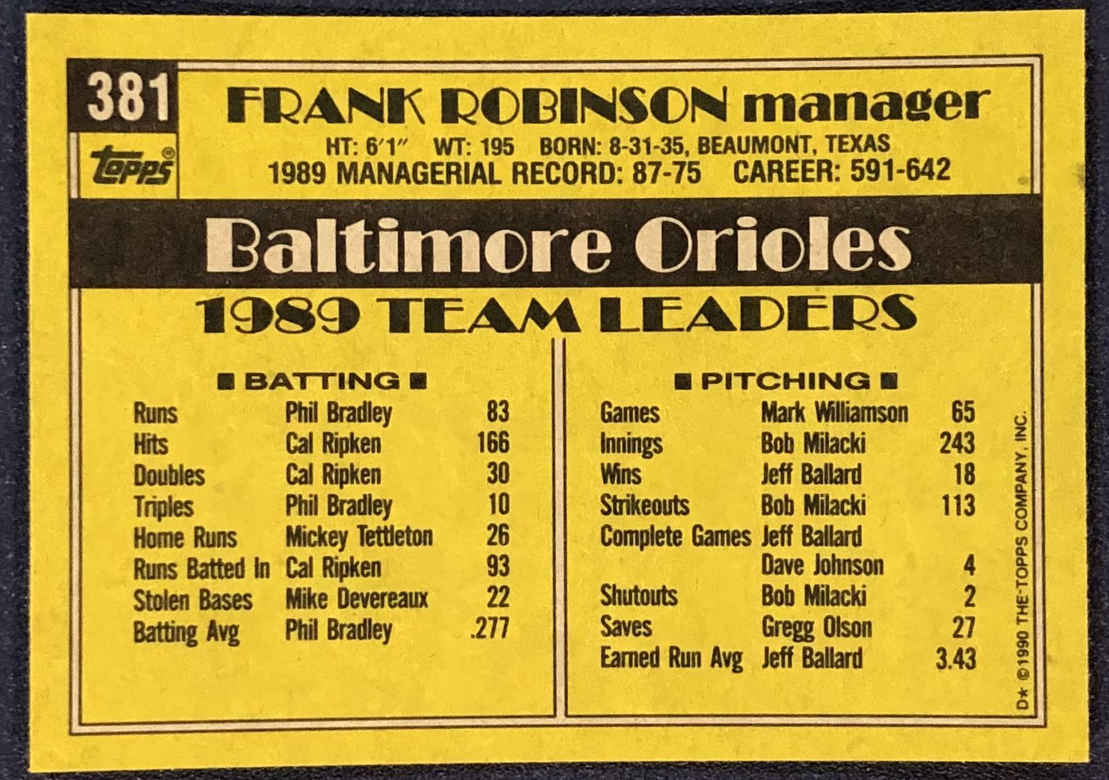 Lot 145 1990 TOPPS FRANK ROBINSON (HOF)