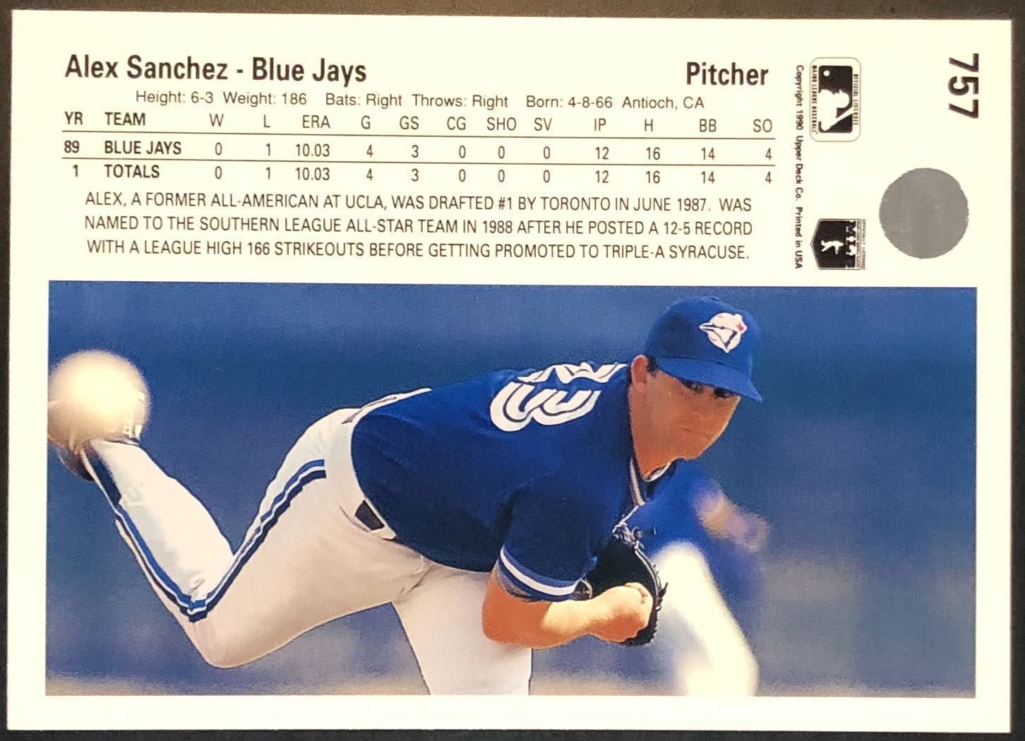 Lot 152 1990 UPPER DECK ALEX SANCHEZ ROOKIE CARD