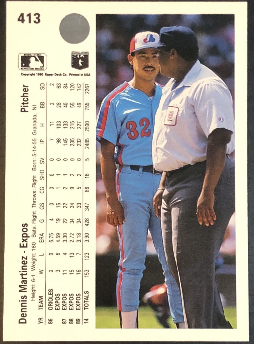 Lot 163 1990 UPPER DECK DENNIS MARTINEZ