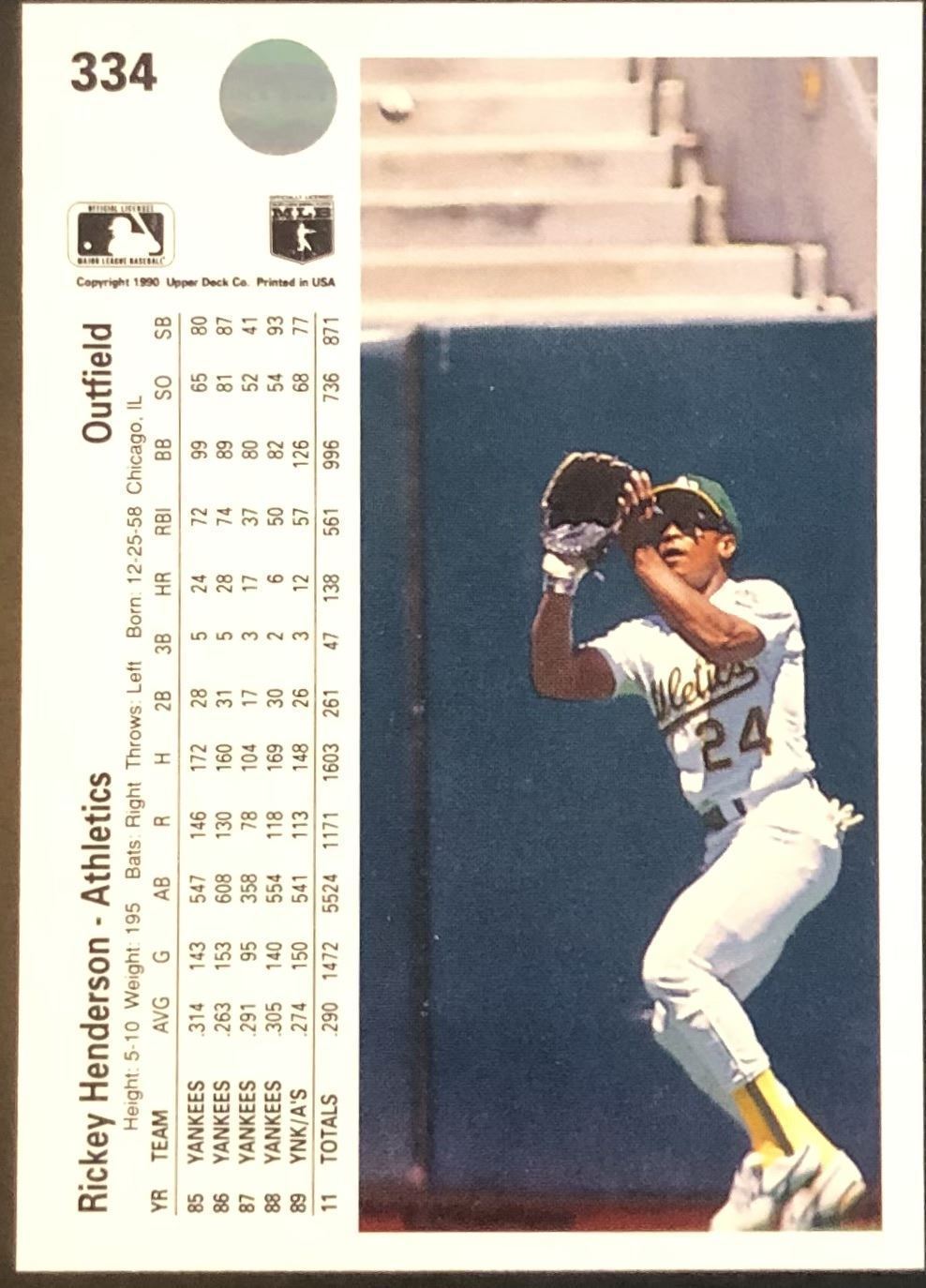 Lot 189 1990 UPPER DECK RICKEY HENDERSON (HOF)