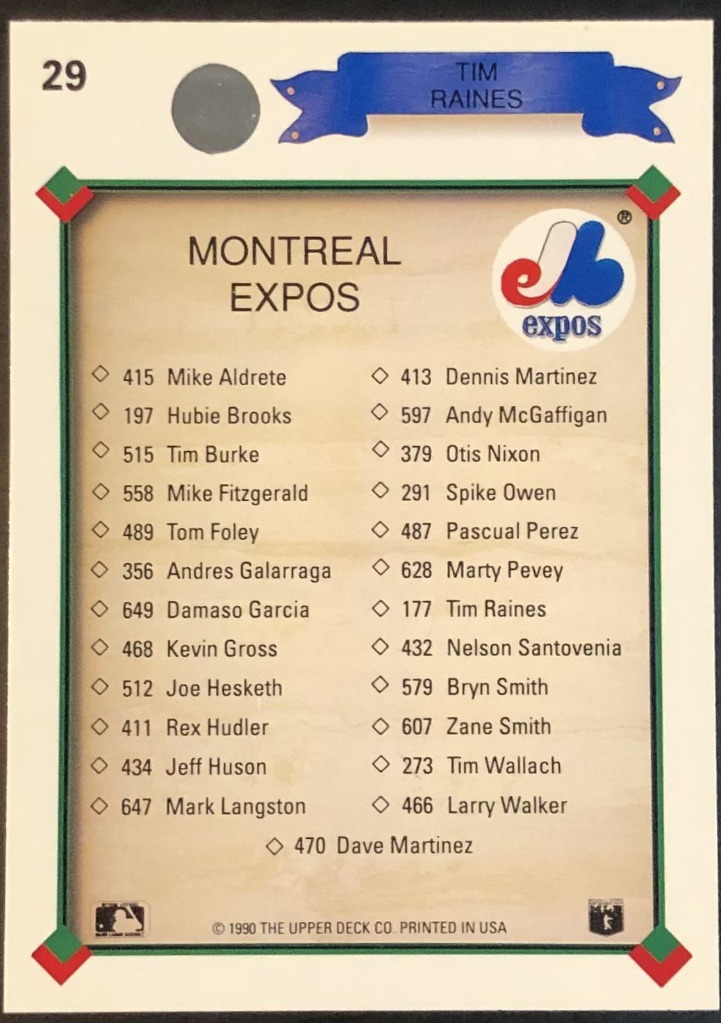 Lot 193 1990 UPPER DECK TIM RAINES (HOF)
