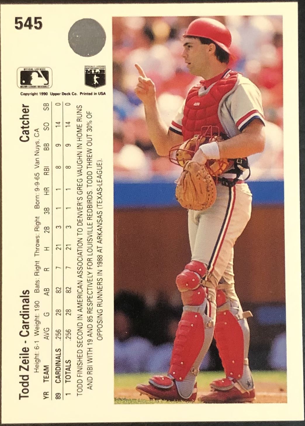 Lot 195 1990 UPPER DECK TODD ZEILE ROOKIE CARD