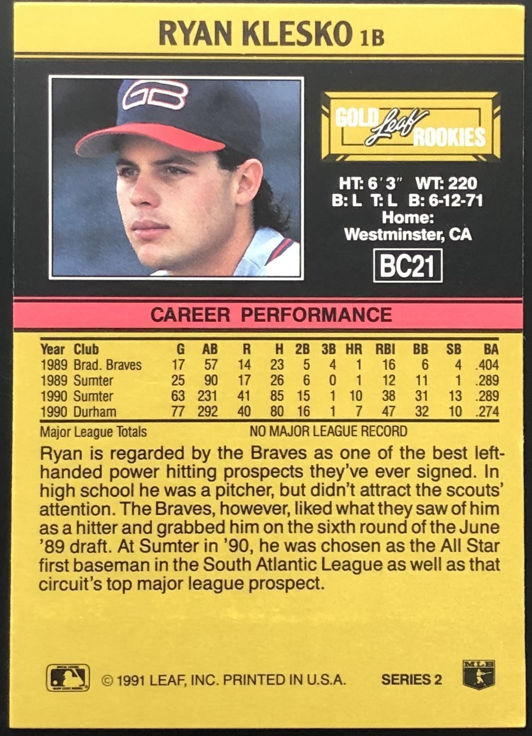 Lot 217 1991 LEAF RYAN KLESKO ROOKIE CARD