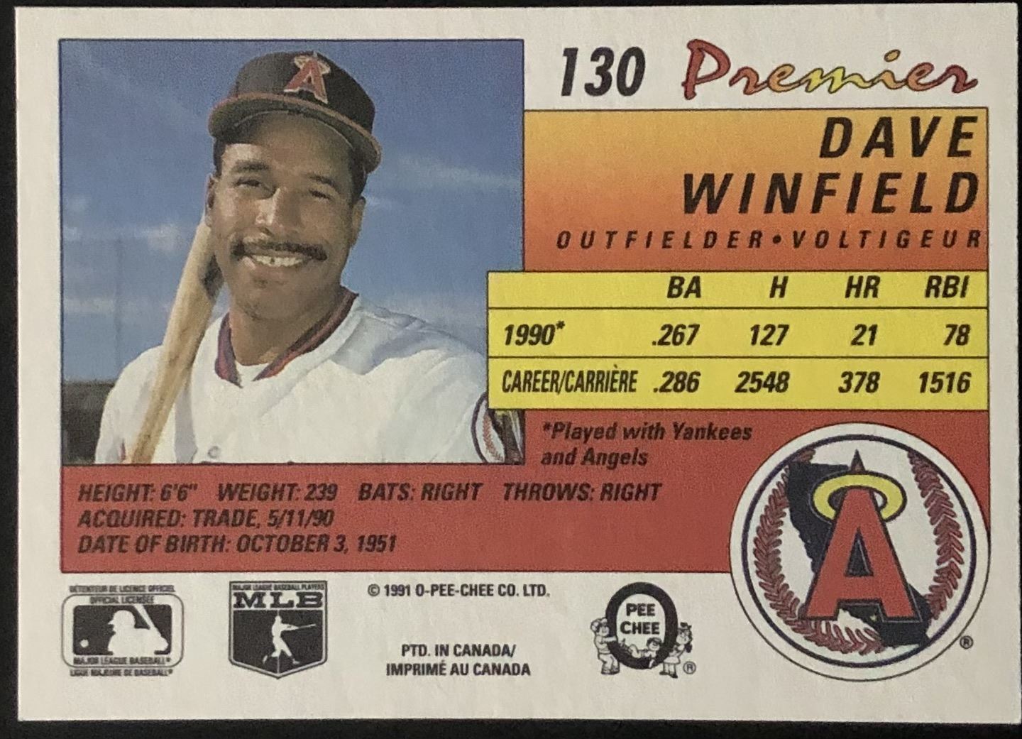 Lot 221 1991 O-PEE-CHEE PREMIER DAVE WINFIELD (HOF)