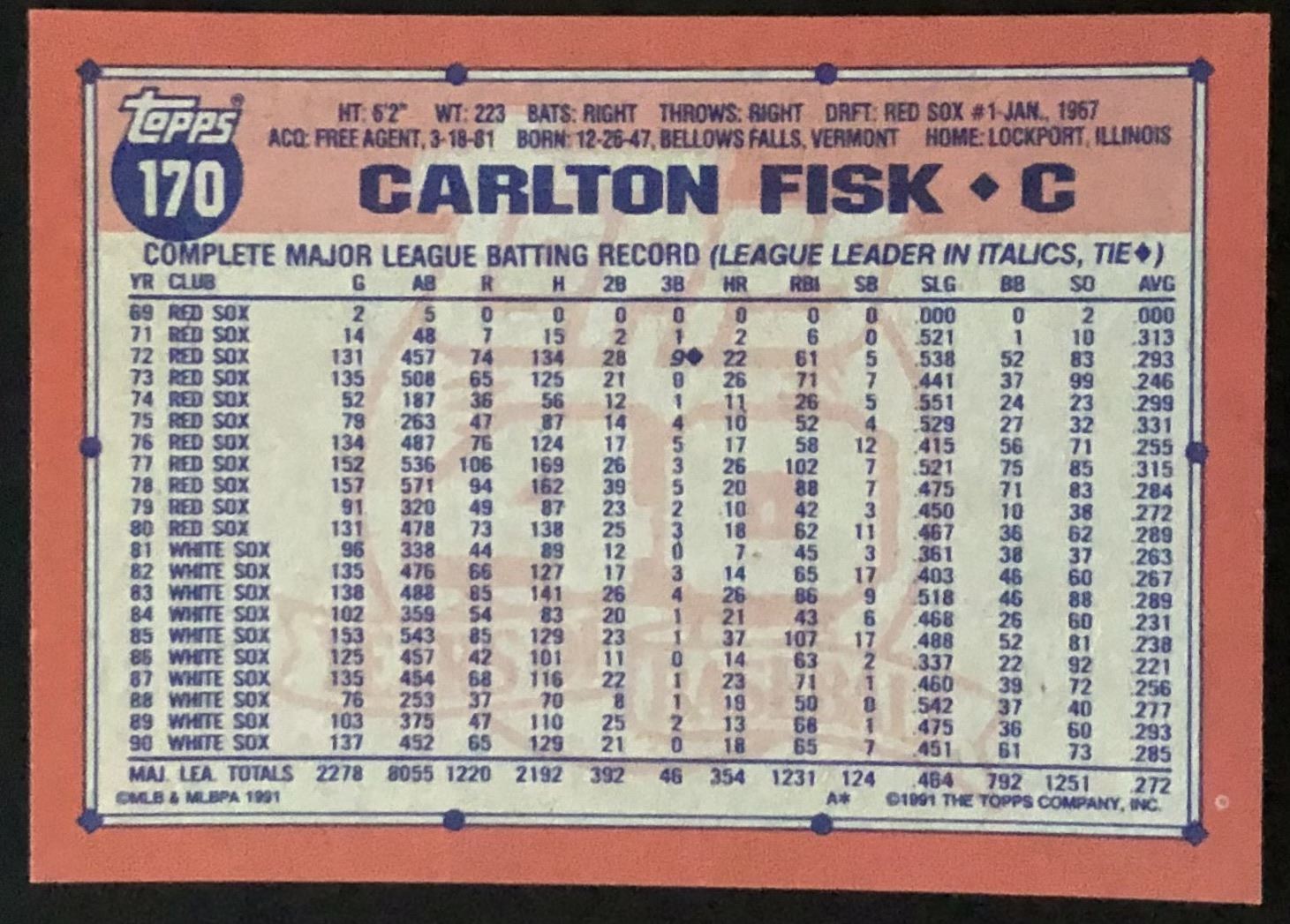 Lot 224 1991 TOPPS CARLTON FISK (HOF)