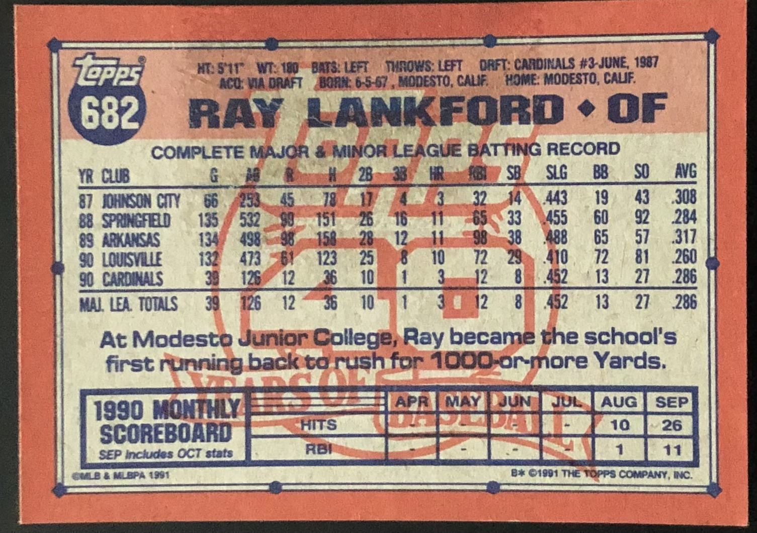 Lot 229 1991 TOPPS RAY LANKFORD ROOKIE CARD