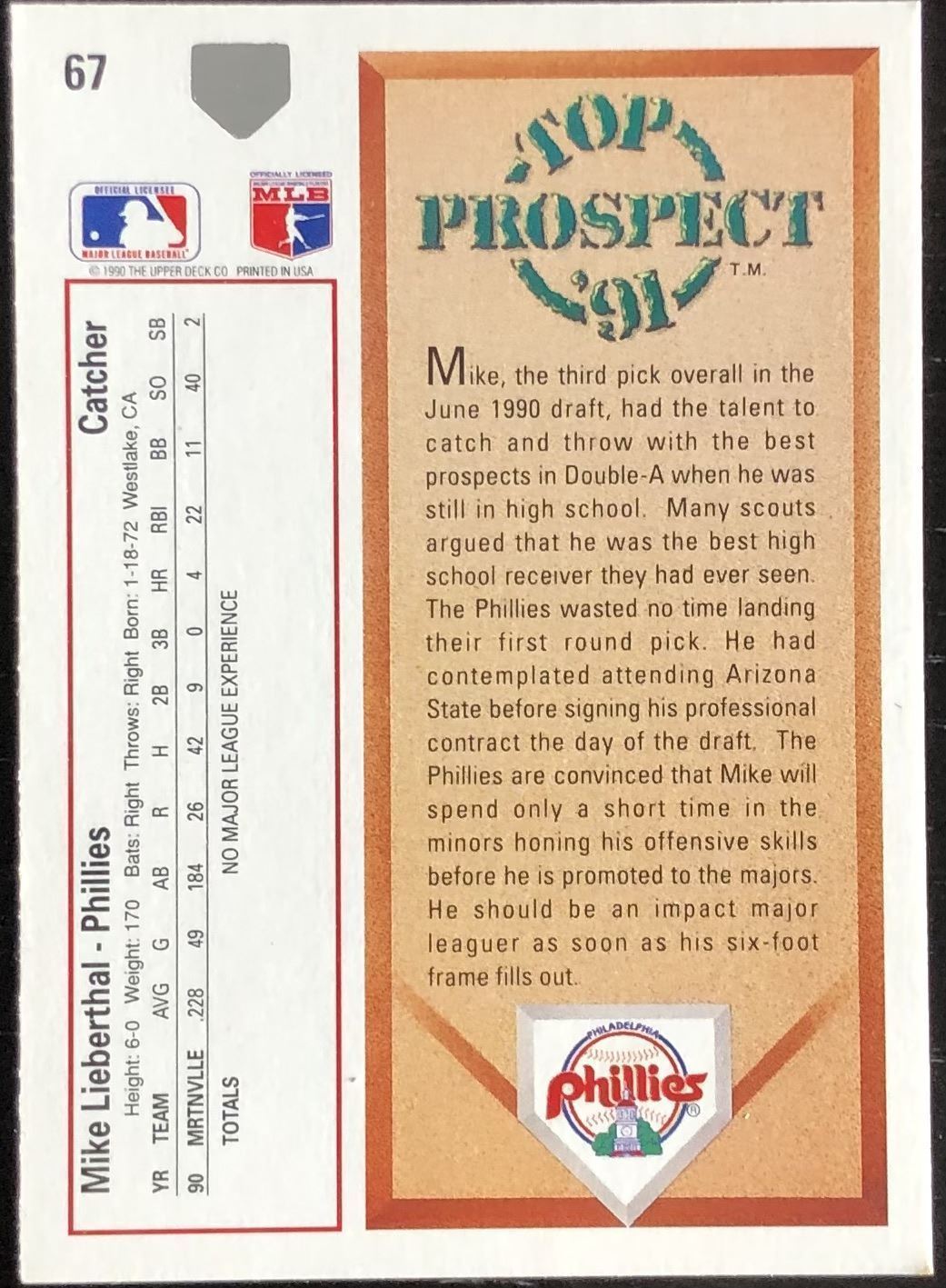 Lot 234 1991 UPPER DECK MIKE LIEBERTHAL ROOKIE CARD