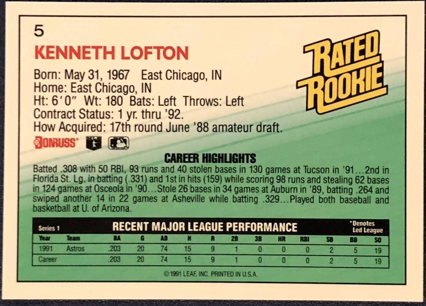 Lot 244 1992 DONRUSS KENNY LOFTON ROOKIE CARD