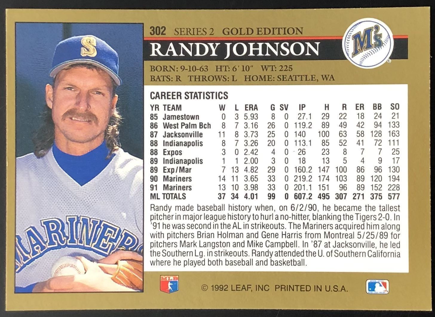 Lot 249 1992 LEAF RANDY JOHNSON (HOF)