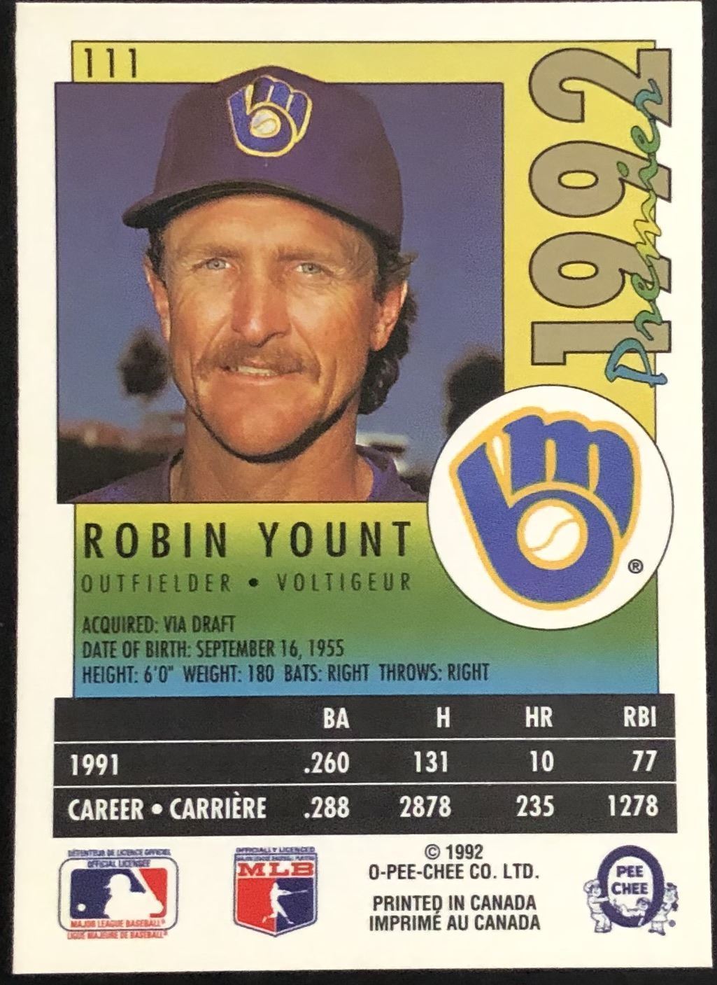 Lot 251 1992 O-PEE-CHEE PREMIER ROBIN YOUNT (HOF)