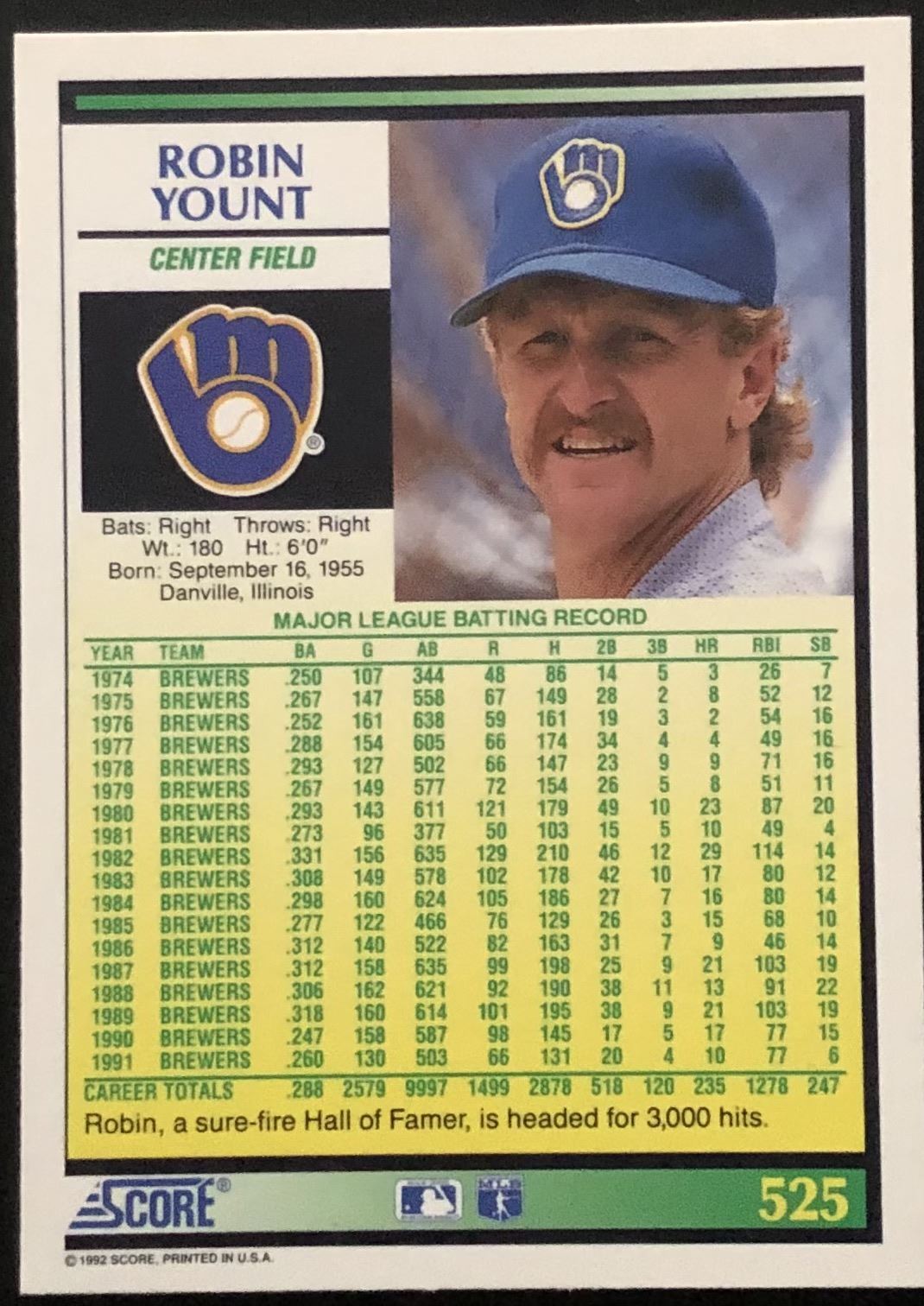 Lot 253 1992 SCORE ROBIN YOUNT (HOF)