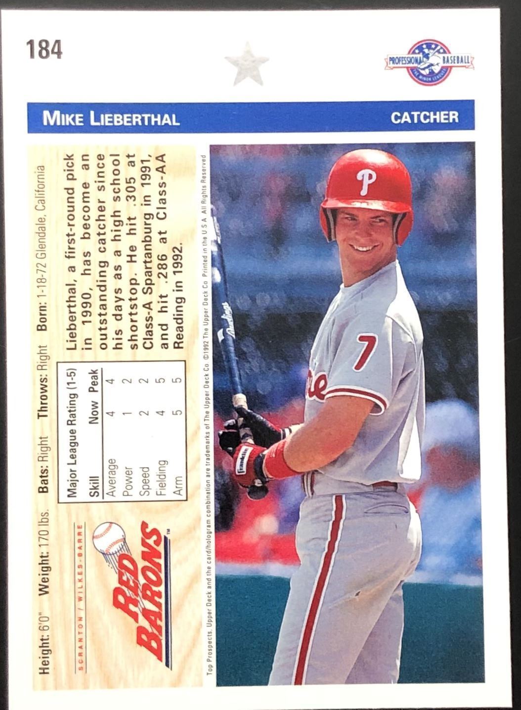 Lot 259 1992 UPPER DECK MIKE LIEBERTHAL ROOKIE CARD