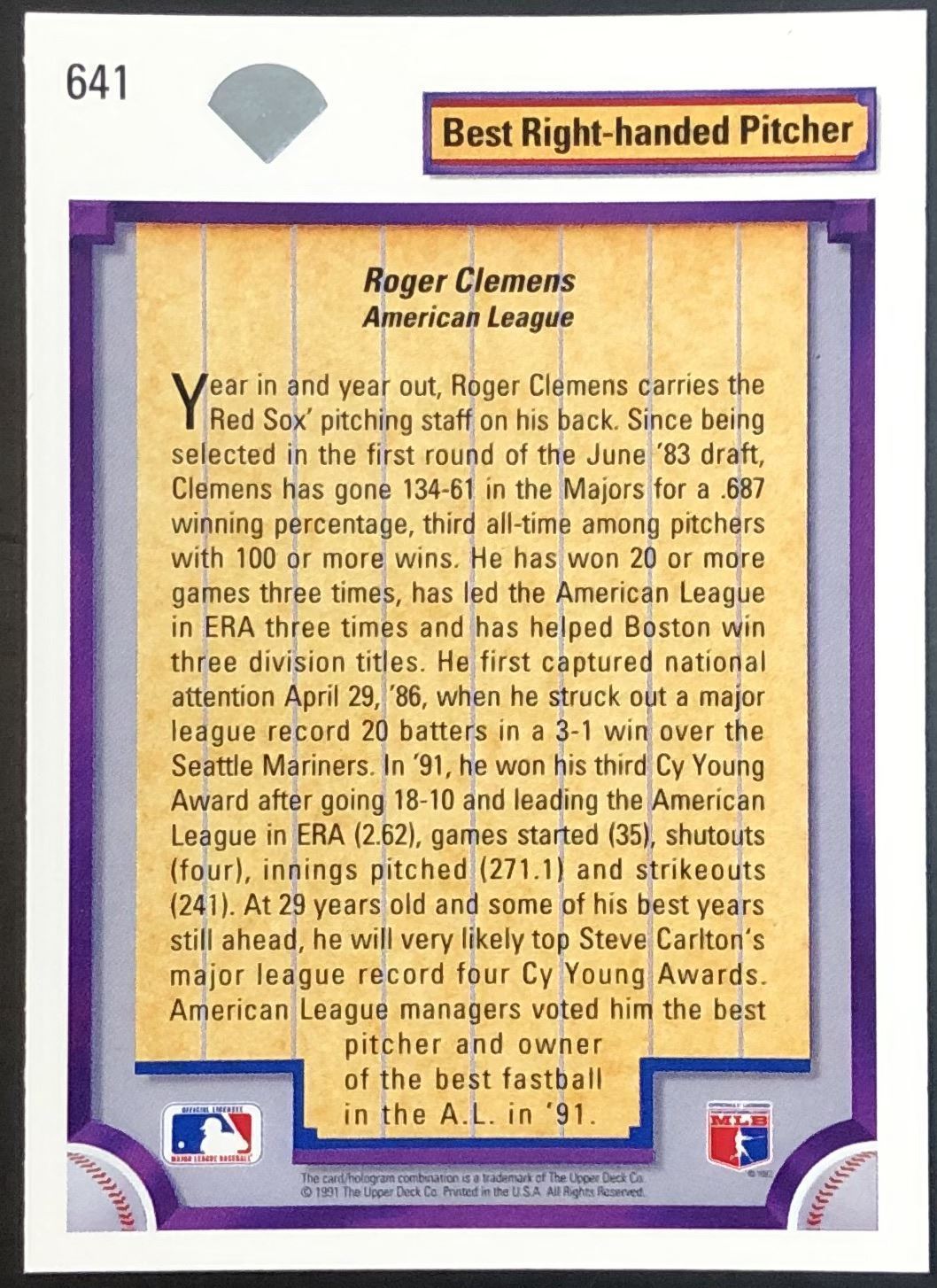 Lot 262 1992 UPPER DECK ROGER CLEMENS