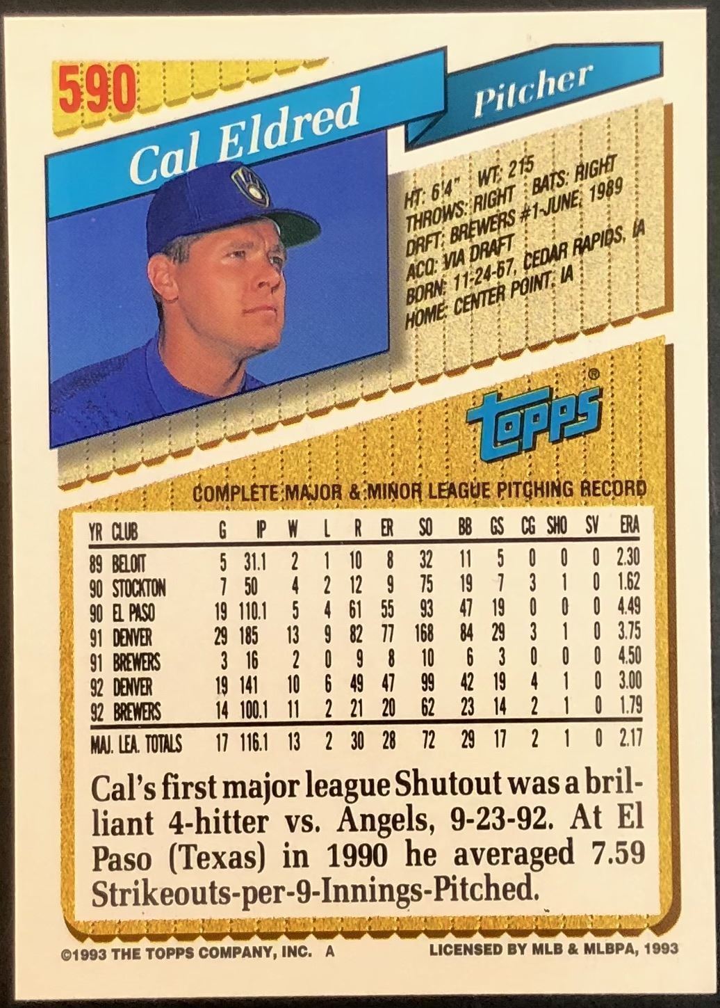 Lot 271 1993 TOPPS CAL ELDRED ROOKIE CARD
