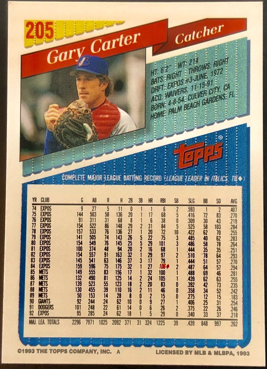 Lot 272 1993 TOPPS GARY CARTER (HOF)