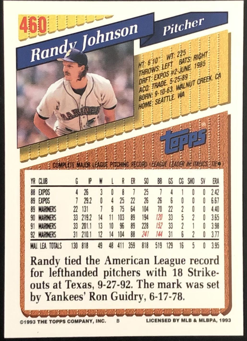 Lot 274 1993 TOPPS RANDY JOHNSON (HOF)