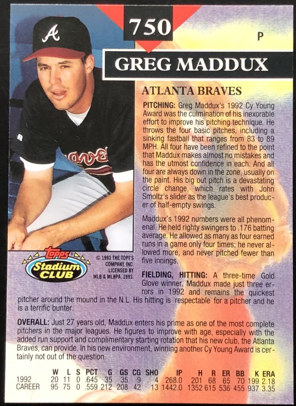 Lot 276 1993 TOPPS STADIUM CLUB GREG MADDUX (HOF)