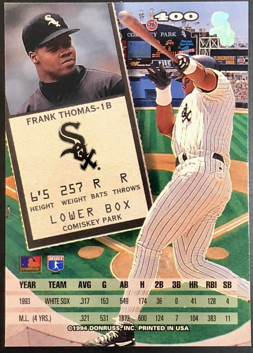 Lot 290 1994 DONRUSS FRANK THOMAS (HOF)