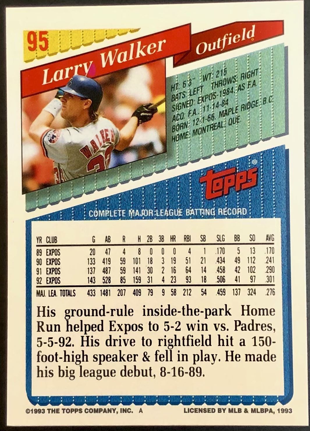 Lot 303 1994 TOPPS LARRY WALKER (HOF)