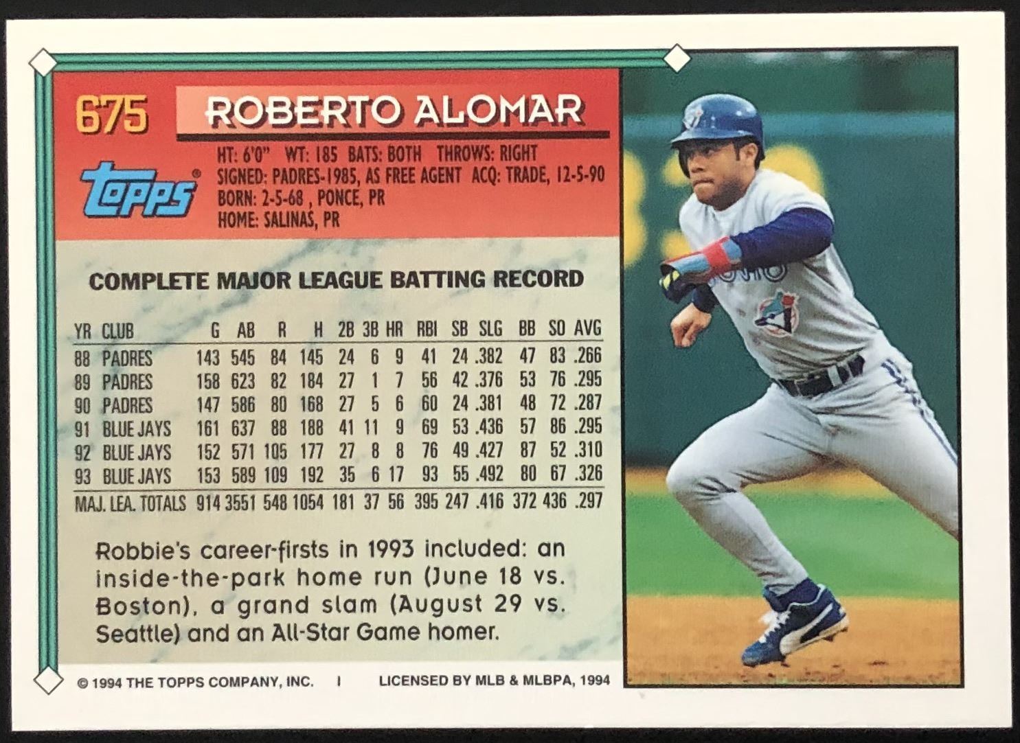 Lot 304 1994 TOPPS ROBERTO ALOMAR (HOF)