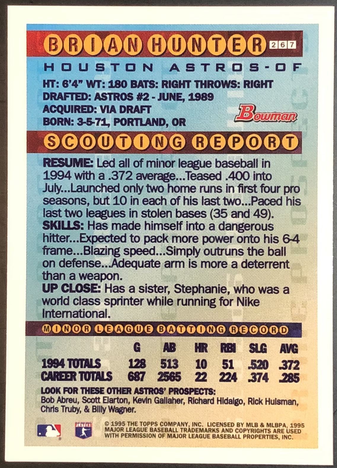 Lot 313 1995 BOWMAN CHROME BRIAN HUNTER ROOKIE CARD