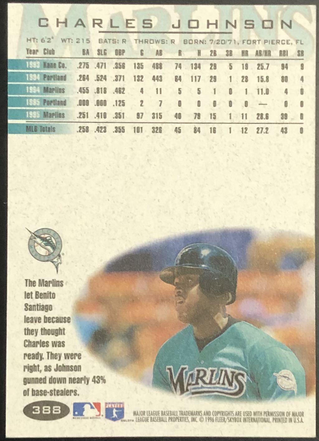 Lot 319 1996 FLEER CHARLES JOHNSON ROOKIE CARD